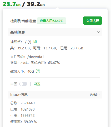 服务器提示“Inode可用不足10%”不是磁盘空间不足,而是文件数量达到上限。每个文件(无论大小)都消耗1个inode,inode用尽将导致无法创建任何新文件,即使磁盘还有空间。